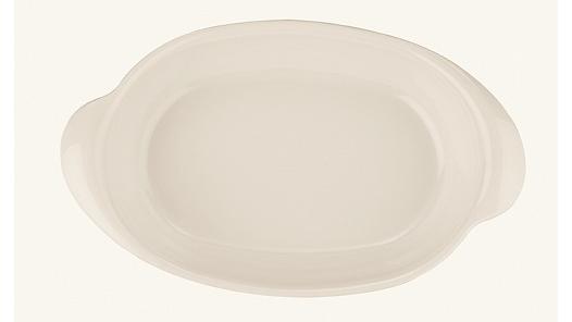 Блюдо белого цвета со сливочным оттенком.