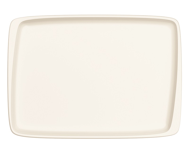 Блюдо белого цвета со сливочным оттенком.