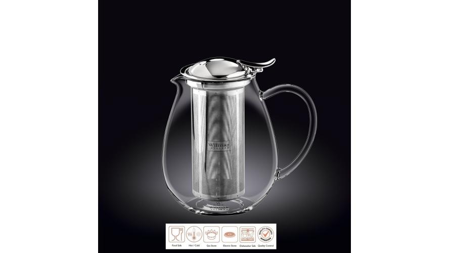 Чайник 1300 мл. заварочный с откидной крышкой и колбой нерж.Термостекло Wilmax/1/18/