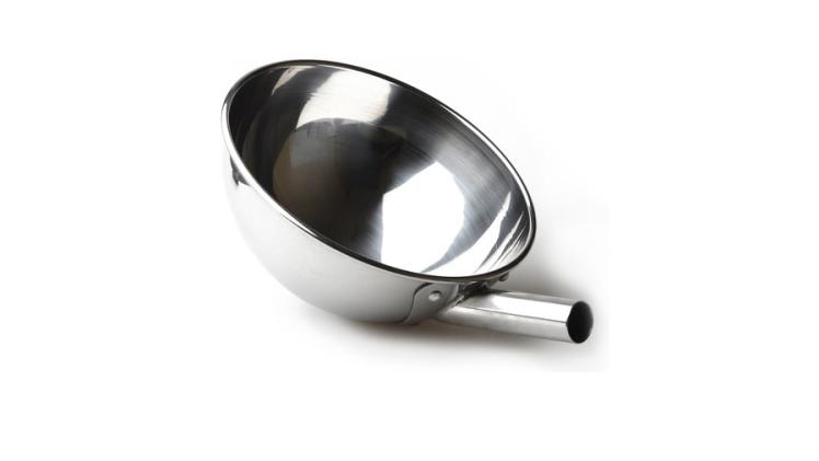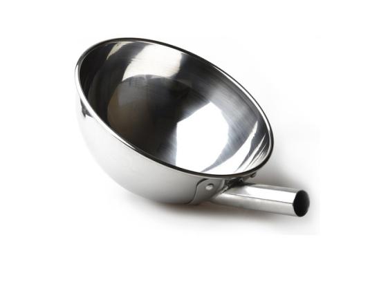Черпак изготовлен из нержавеющей стали, которая не окисляется и не деформируется при высоких температурах.