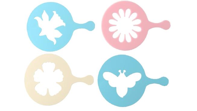 С пластмассовыми трафаретами очень легко из обычной чашечки кофе или десерта создать настоящее произведение искусства: