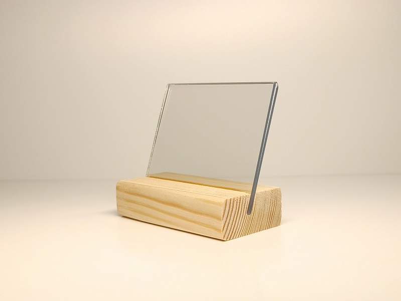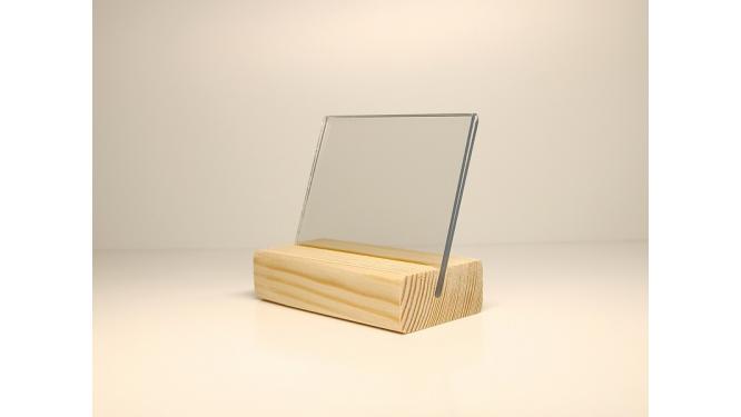 string(284) "Держатель ценника на деревянном основании с прорезью под углом для прозрачной вставки размером 74х52 мм, для вложения формата А8.