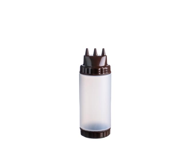 Емкость для соуса 500 мл выполнена из прочного пищевого пластика и предназначена для профессионального использования в сегменте HoReCa. Конструкция с двумя откручивающимися крышками обеспечивает удобство наполнения, использования и ухода. Тройной дозирующий носик позволяет быстро и точно распределять содержимое. Коричневый цвет служит маркировкой для соуса барбекю, шоколада и топпингов. Прозрачный корпус облегчает визуальный контроль содержимого. Подходит для мытья в посудомоечной машине.