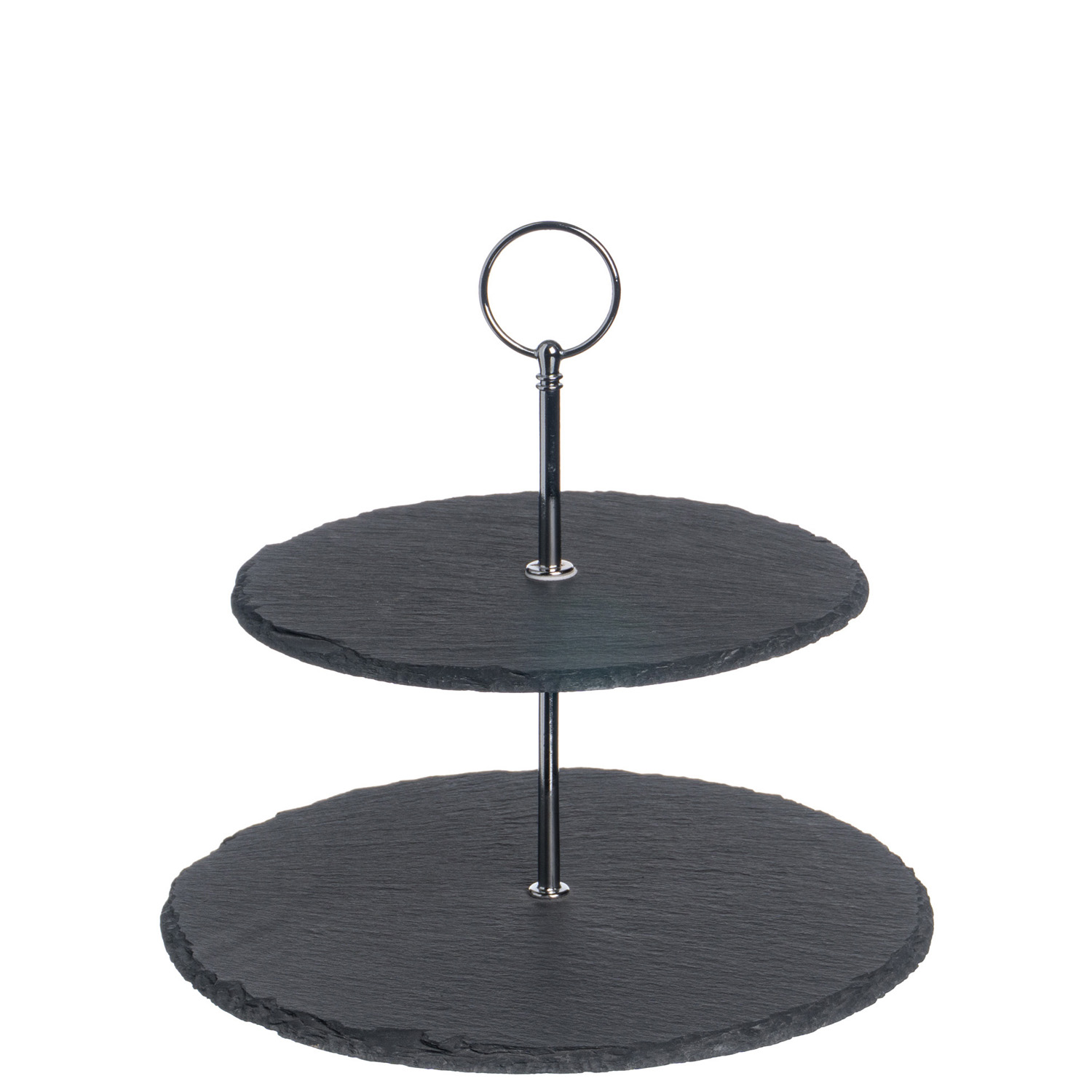 Этажерка под закуски, изготовленная из натурального природного материала – сланца. Сочетание естественной фактуры и строгого серого цвета камня смотрится необычайно стильно, она не только послужит отличным украшением праздничного стола, но позволит красиво подать приготовленные закуски или сладости.