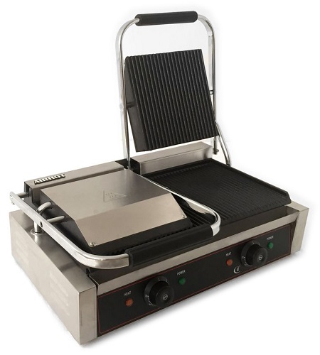 string(1855) "Электрический прижимной гриль с чугунными рабочими поверхностями используется для жарки мяса, птицы, рыбы, морепродуктов, овощей в ресторанах, кафе, на предприятиях общественного питания. Идеально подходит для приготовления шаурмы, бургеров, стейков, горячих сэндвичей.