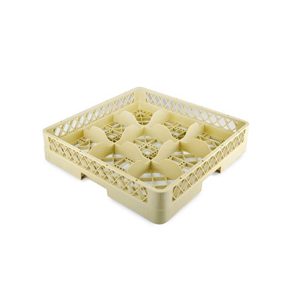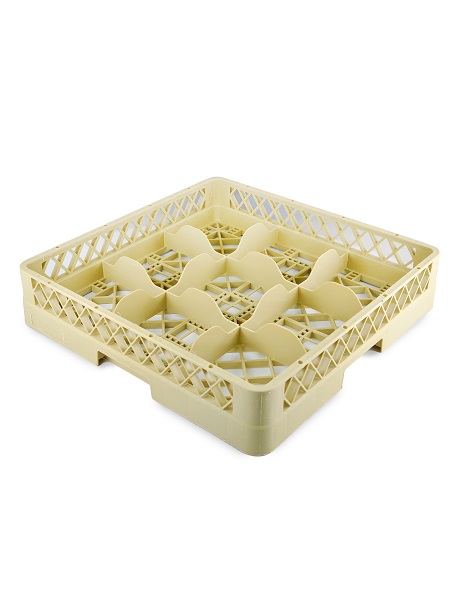 Кассета для фужеров 9 секций, бежевая (полипропилен) используется для мытья одноразмерной посуды (фужеров, бокалов и др.), кухонного инвентаря, столовых приборов на профессиональной кухне предприятий общественного питания. Кассеты имеют стандартные размеры, что позволяет использовать их во всех существующих профессиональных посудомоечных машинах: фронтального, купольного и туннельного типа. Максимальный диаметр посуды для размещения в ячейках кассеты 150 мм. Помимо мойки, кассеты используются для хранения и транспортировки посуды из моечной зоны в зону раздачи, что позволяет избежать её загрязнения и значительно уменьшить бой посуды.