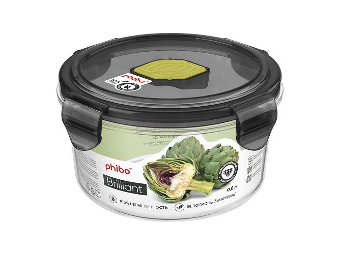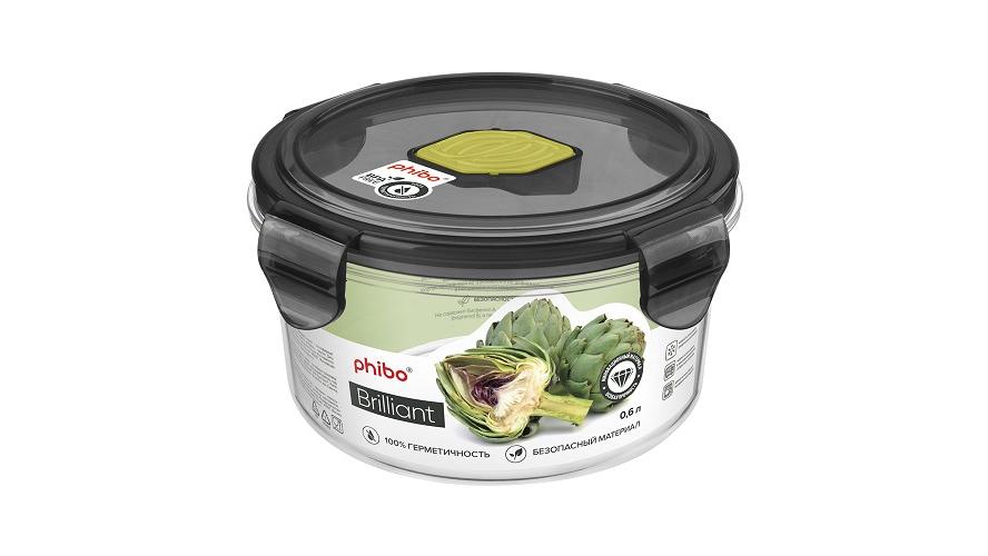 Контейнер для продуктов круглый 0,6 л. d=12,5 см. h=6,5 см.герметич.с клапаном "Бриллиант"/1/12/