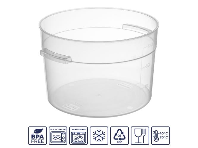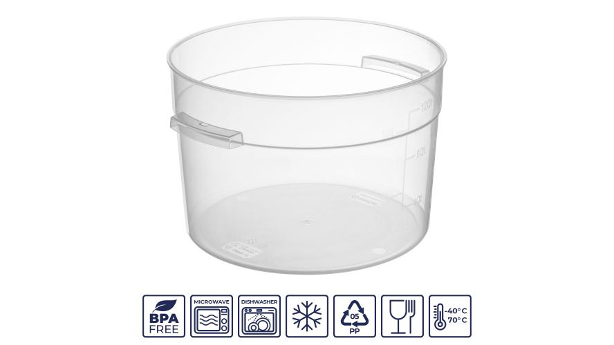 Контейнер для продуктов круглый 11,4 л. d=31 см. h=21 см., с мерной шкалой, прозрачный, п/п, без крышки (крышка 76740, 76739, 76738, 76741) GP /1/6/