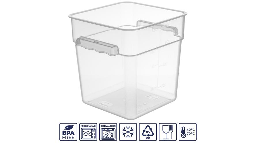 Контейнер для продуктов квадратный 7,6 л. 22*22*23 см. с мерной шкалой, прозрачный, п/п, без крышки (крышка 76712, 76711, 76712, 76713) GP /1/12/