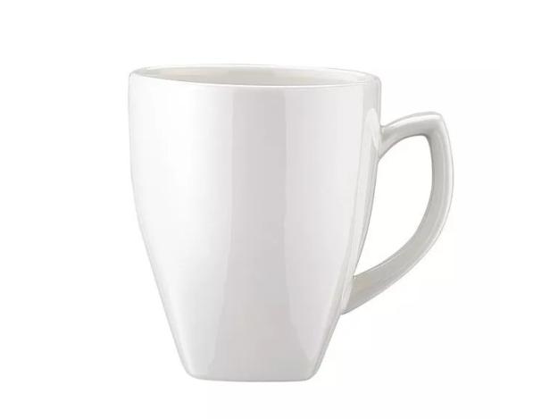 Кружка белого цвета со сливочным оттенком.
