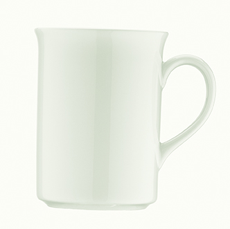 Кружка белого цвета со сливочным оттенком.