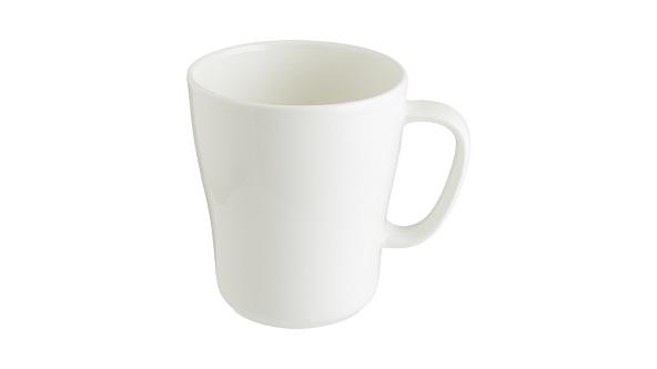 Кружка белого цвета со сливочным оттенком.
