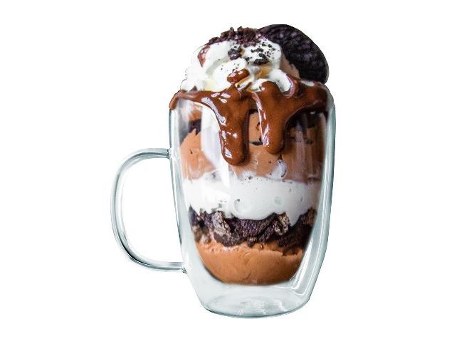 Чашка с двойными стенками для напитков и десертов; долго сохраняет температуру содержимого, при этом внешнее стекло остается безопасным на ощупь; благодаря системе двойных стенок напиток словно парит, особый оптический эффект.