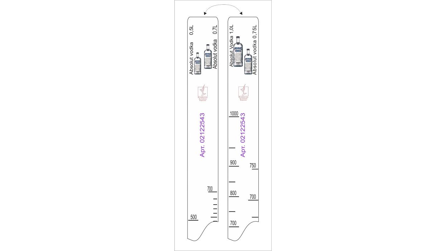 Линейка Absolut (0,5 л./0,7 л./0,75 л./1 л.) L=28 см. В=2 см. /1/