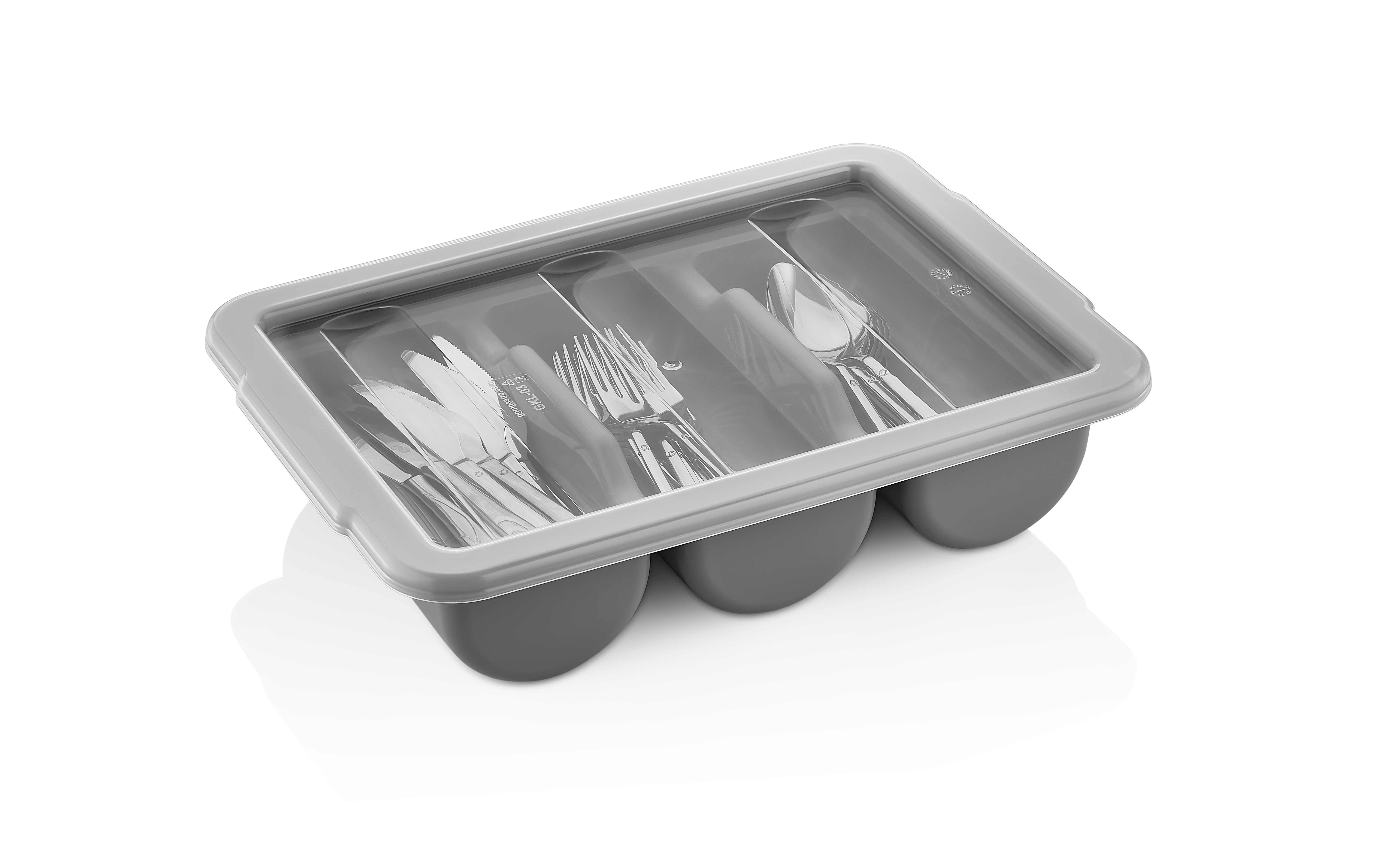 Лоток для столовых приборов (органайзер) 3 секции 40*29*9,5 см. серая, п/п (крышка 76908) GP /1/12/