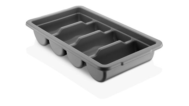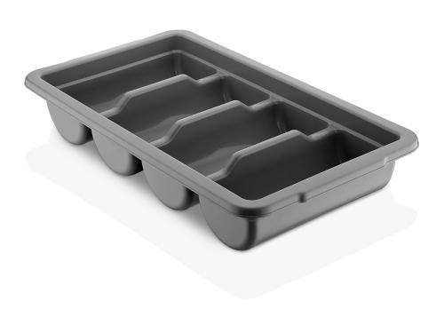 Емкость для столовых приборов (53*29*9,5 см) из полипропилена на 4 секции. Удобные ручки обеспечивают надежный хват. Возможность штабелирования экономит место при хранении. Подходит для мытья в посудомоечной машине.