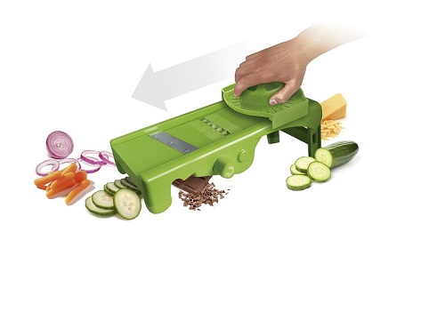 string(225) "32,8*16,4*9 см. 3 лезвия в комплекте, 8 видов нарезки, толщина от 1 до 9 мм, 6/9 кусков