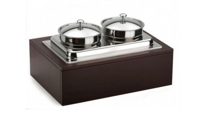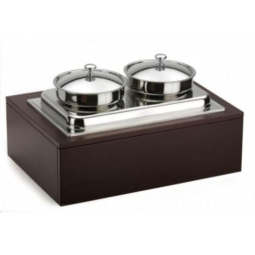 Мармит 1-х блюд, 2 кастрюли 5 л. с крышками, нерж., подставка дерево, коричневый Pinti /1/ Под заказ