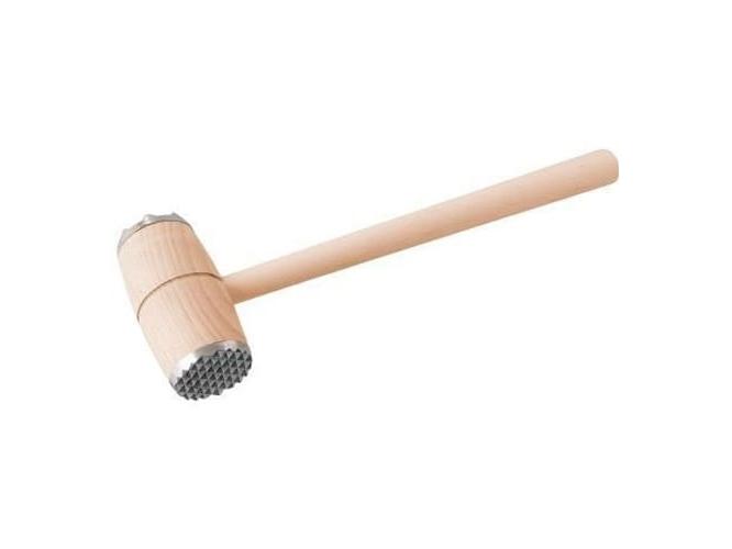 Молоток для мяса выполнен из натурального дерева. Рабочая поверхность молотка выполнена из алюминиевого сплава и имеет 2-е стороны: с крупными зубцами и с мелкими. Молоток предназначен для отбивания мяса, что делает его более нежным и сокращает время для приготовления. Удобная эргономичная ручка. Молоток для мяса займет достойное место среди аксессуаров на вашей кухне. Легко мыть под струей воды с использованием моющего средства.