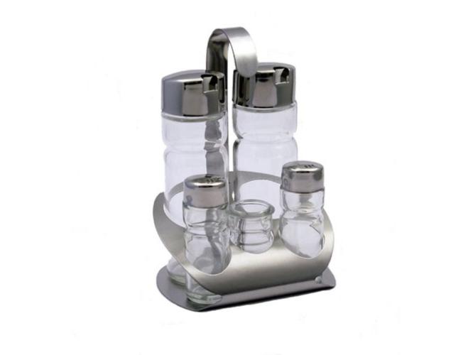 string(284) "Набор предметов для специй, в который входит солонка, перечница, емкости для масла и уксуса + стаканчик для зубочисток.