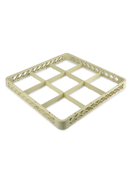 Надстройка для кассеты 9 секций, бежевая (полипропилен) используется как дополнительный элемент для установки на основную кассету с целью увеличения её высоты. Кассеты применяются для мытья одноразмерной посуды (фужеров, бокалов и др.), кухонного инвентаря, столовых приборов на профессиональной кухне предприятий общественного питания. Кассеты имеют стандартные размеры, что позволяет использовать их во всех существующих профессиональных посудомоечных машинах: фронтального, купольного и туннельного типа. Максимальный диаметр посуды для размещения в ячейках кассеты 150 мм. Помимо мойки, кассеты используются для хранения и транспортировки посуды из моечной зоны в зону раздачи, что позволяет избежать её загрязнения и значительно уменьшить бой посуды.