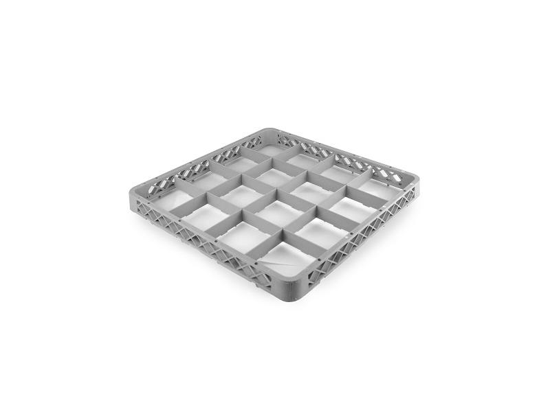 Надстройка для кассеты 16 секций, серая (полипропилен) используется как дополнительный элемент для установки на основную кассету с целью увеличения её высоты. Кассеты применяются для мытья одноразмерной посуды (фужеров, бокалов и др.), кухонного инвентаря, столовых приборов на профессиональной кухне предприятий общественного питания. Кассеты имеют стандартные размеры, что позволяет использовать их во всех существующих профессиональных посудомоечных машинах: фронтального, купольного и туннельного типа. Максимальный диаметр посуды для размещения в ячейках кассеты 113 мм. Помимо мойки, кассеты используются для хранения и транспортировки посуды из моечной зоны в зону раздачи, что позволяет избежать её загрязнения и значительно уменьшить бой посуды.