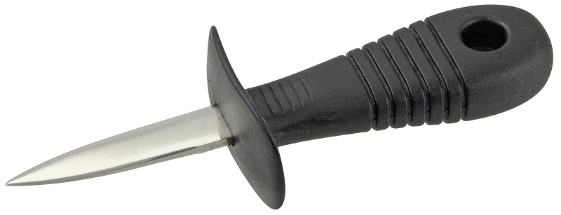 Рукоять ножа с защитой пальцев выполнена из пластика с нескользящей поверхностью и широкой задней частью, что позволяет крепко и безопасно держать нож при открывании моллюска.