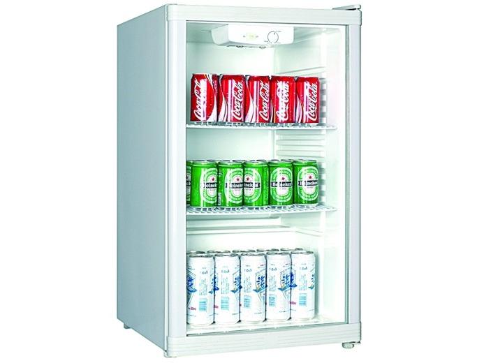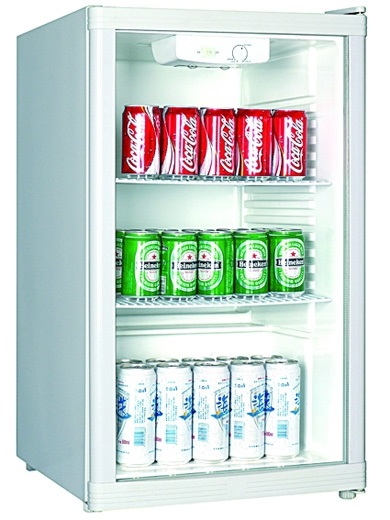 Холодильный шкаф витринного типа, 1 распашная стеклянная дверца, подсветка, 2 полки-решетки, цвет белый.