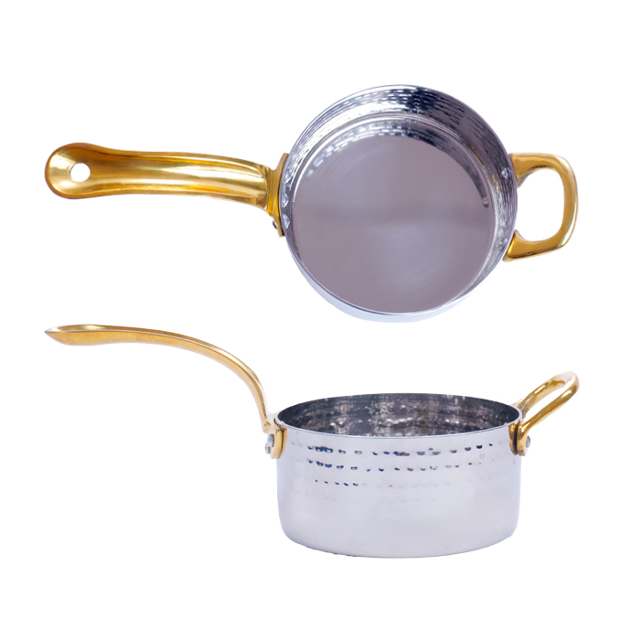 Сковорода порц. d=10,5 см. h=5 см. 0,45 л. нерж. глубокая с 2 ручками латунь MGsteel /1/36/ АКЦИЯ