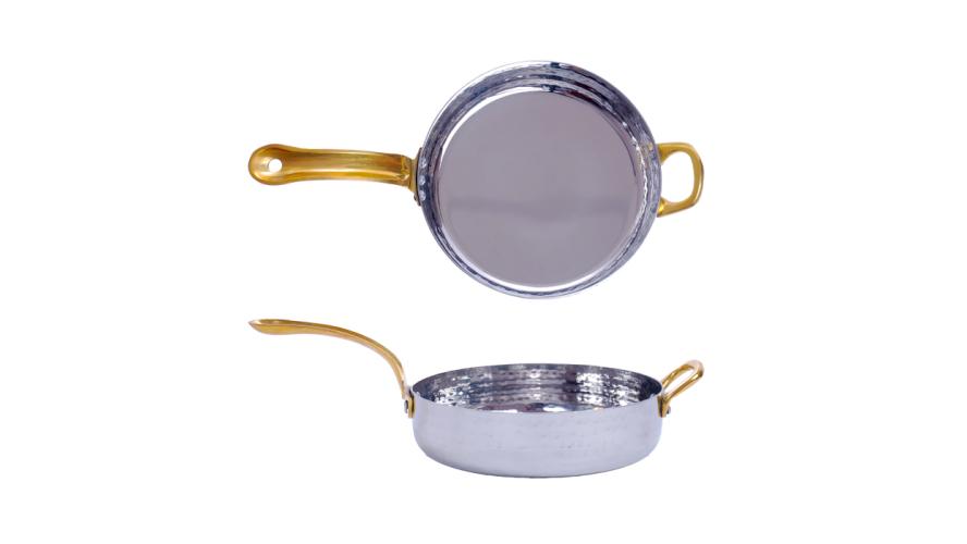 Сковорода порц. d=15,5 см. h=4 см. 0,7 л. нерж. глубокая с 2 ручками латунь MGsteel /1/36/