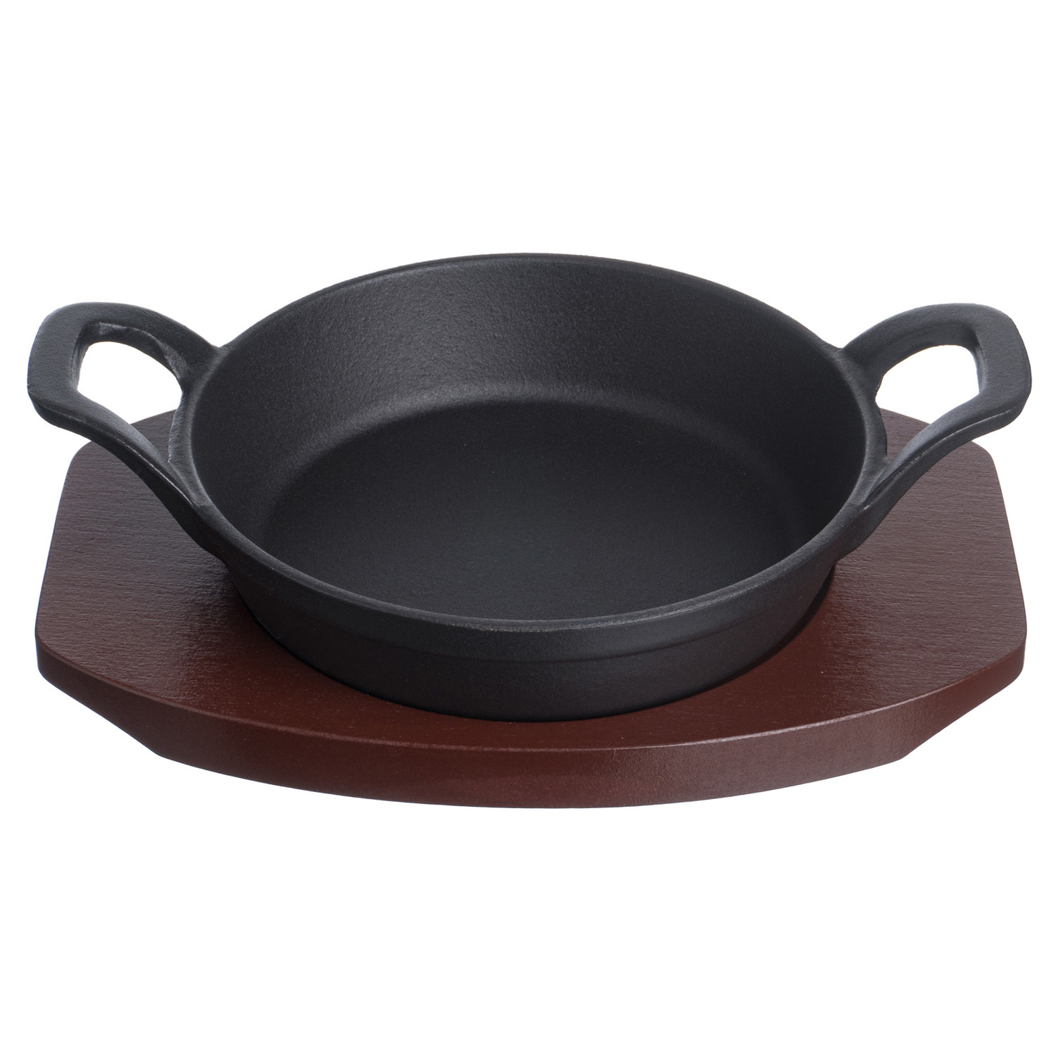 Сковорода порц. d=16 см. h=4,7 см. 0,5 л. чугун. с 2 ручками на дерев. подставке /1/