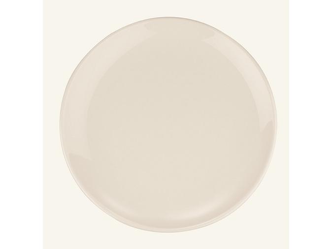 Тарелка белого цвета со сливочным оттенком.