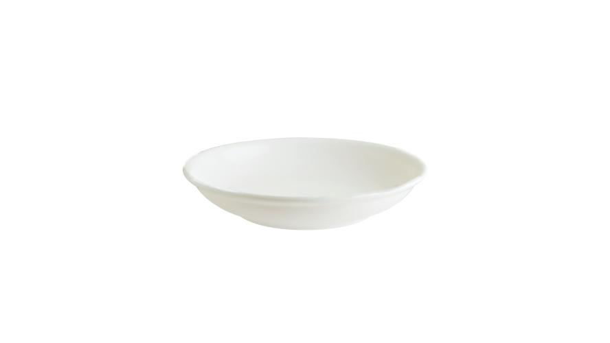 Тарелка белого цвета со сливочным оттенком.