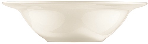 Тарелка белого цвета со сливочным оттенком.