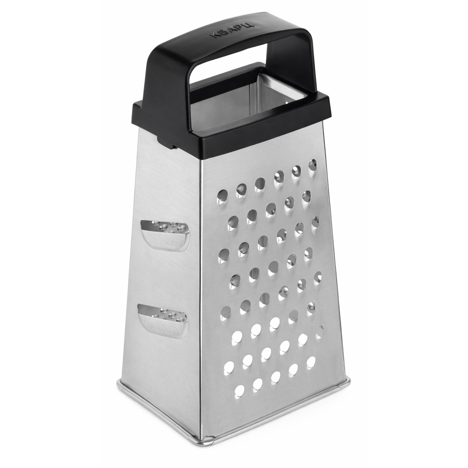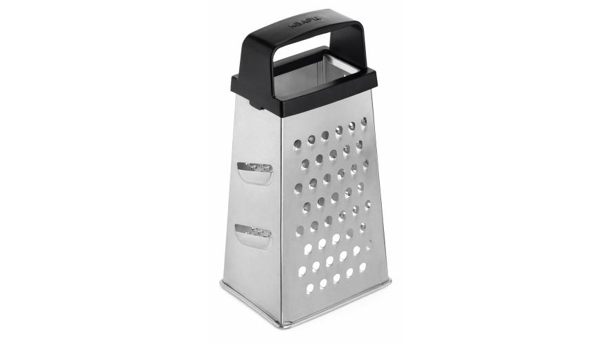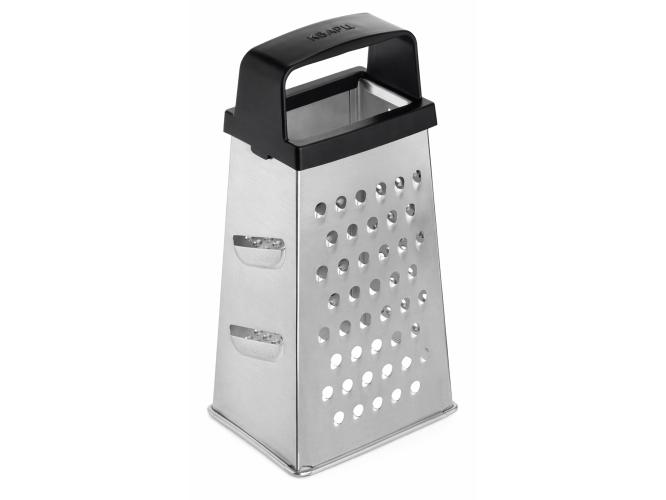 Четырехгранная терка из белой жести оснащена удобной ручкой.