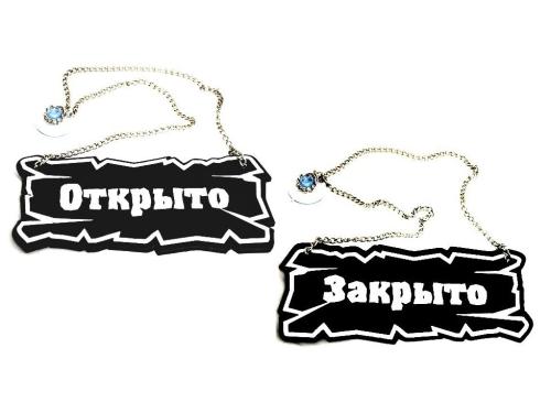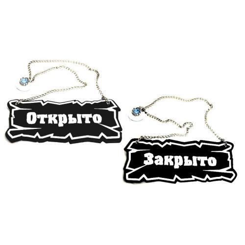 Вывеска "Открыто/закрыто" 25*10 см. на цепочке кожа темно-корич. /1/ Под заказ
