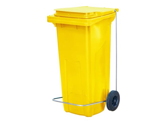 Бак для мусора 120 л. 55*45*96 см. желтый, с крышкой на колёсах с педалью /1/