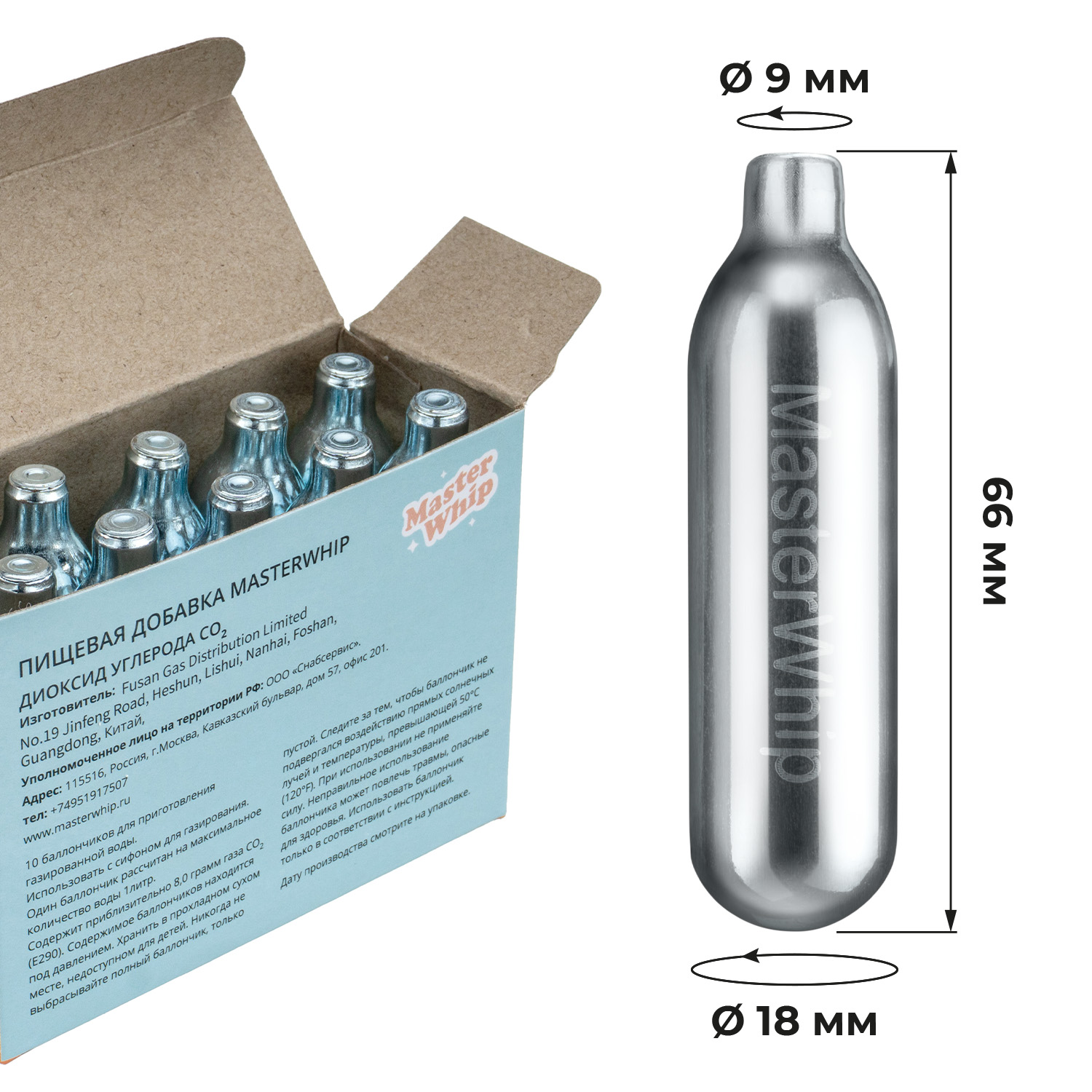 Баллончики для сифона для газирования воды (CO2) 10 шт/уп MasterWhip /1/72/