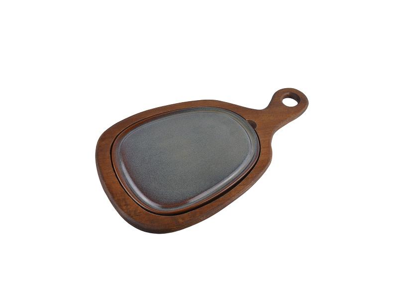 Блюдо для подачи 24,5*20,5 см. h=2,5 см. с ручкой на дерев. подставке, фарфор серия Глоир Bonna /1/6/