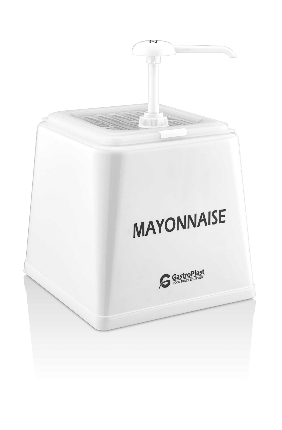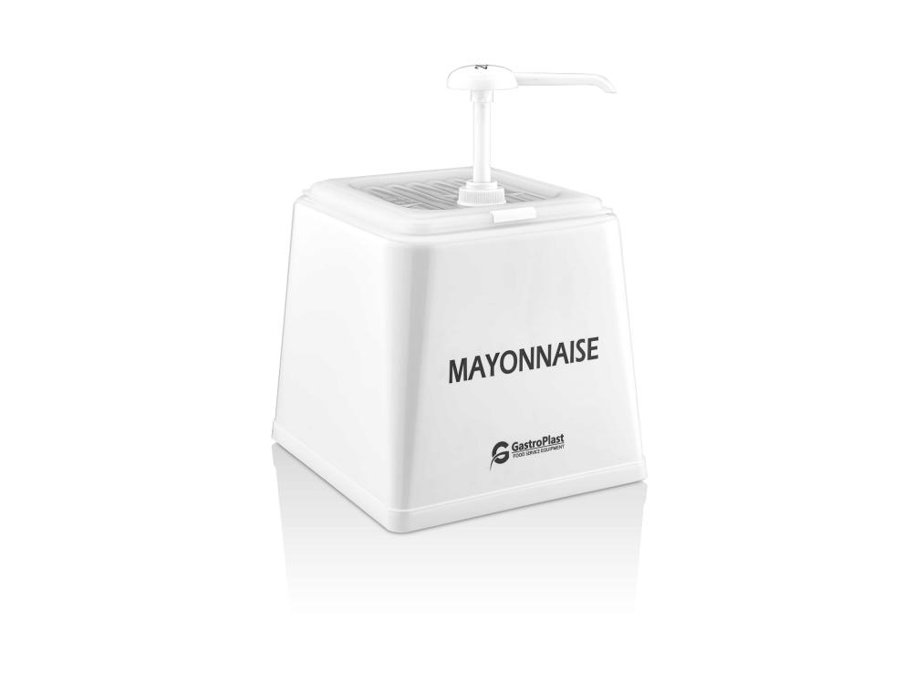 Диспенсер (емкость) для соуса 225*210 мм. h=225 мм. 2,5 л. с дозатором (25 мл), п/п, белая подставка пластик GP /1/