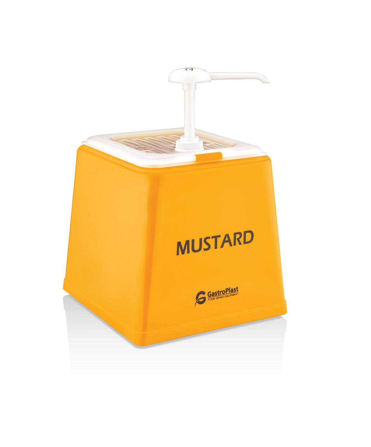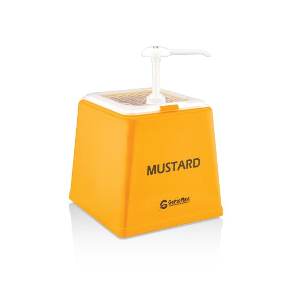 Диспенсер (емкость) для соуса 225*210 мм. h=225 мм. 2,5 л. с дозатором (25 мл), п/п, желтая подставка пластик GP /1/