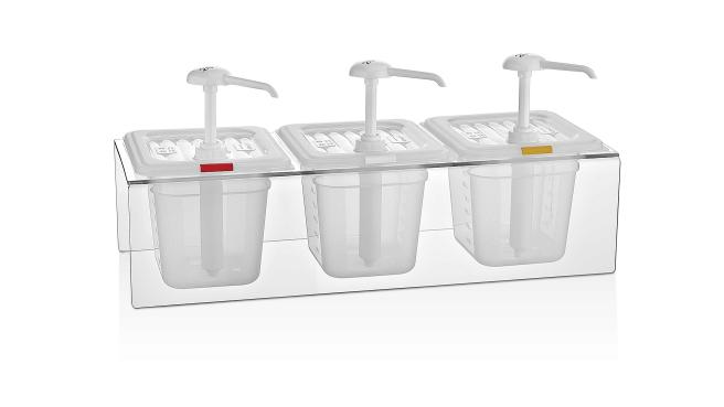 Диспенсер (емкость) для соуса 3 шт. GN 1/6 h=150 мм. 2 л. на подставке, с дозатором (25 мл), п/п, прозрачный GP /1/