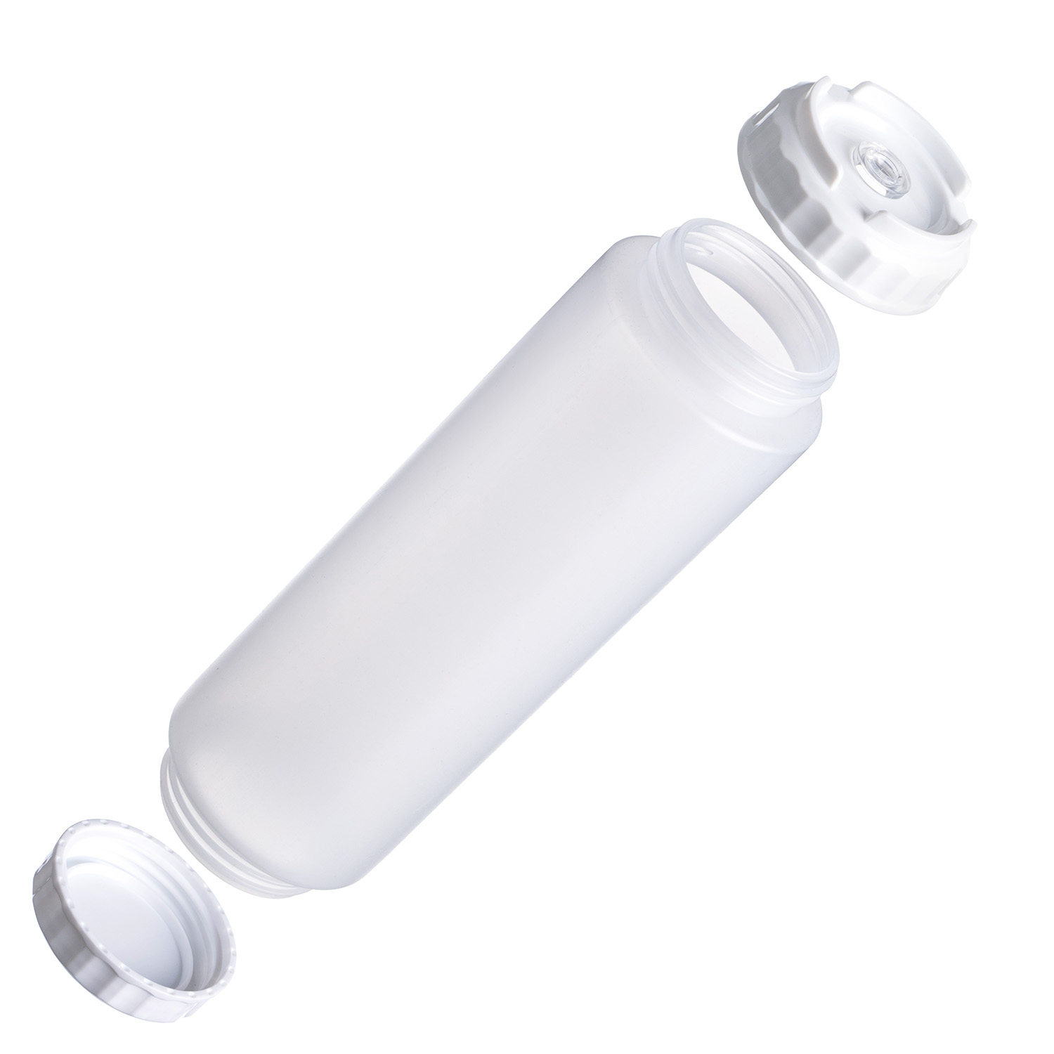 Емкость для соуса 1000 мл. d=75 мм. h=257 мм. c 2 крышками, с силик. носик. широкая прозрачная, крышки белые GP /1/96/