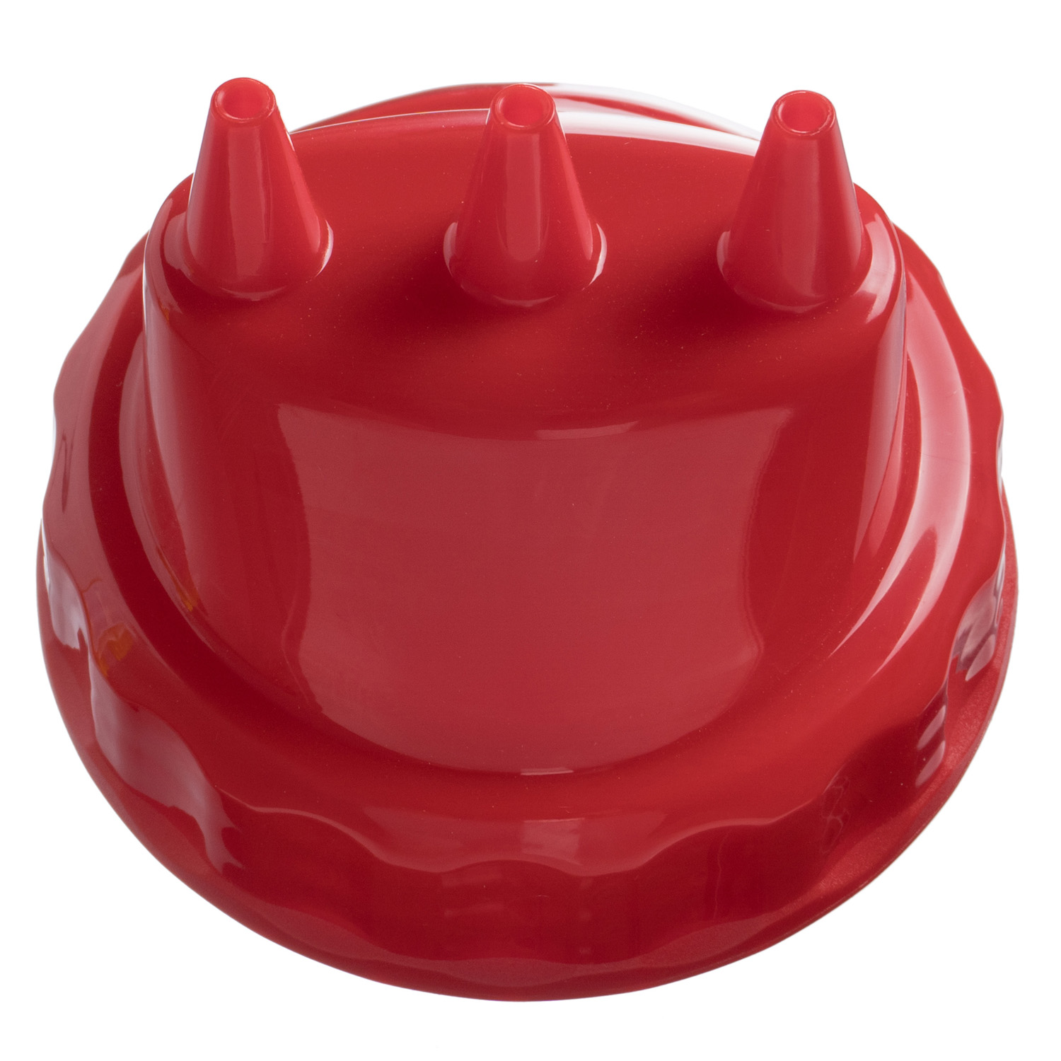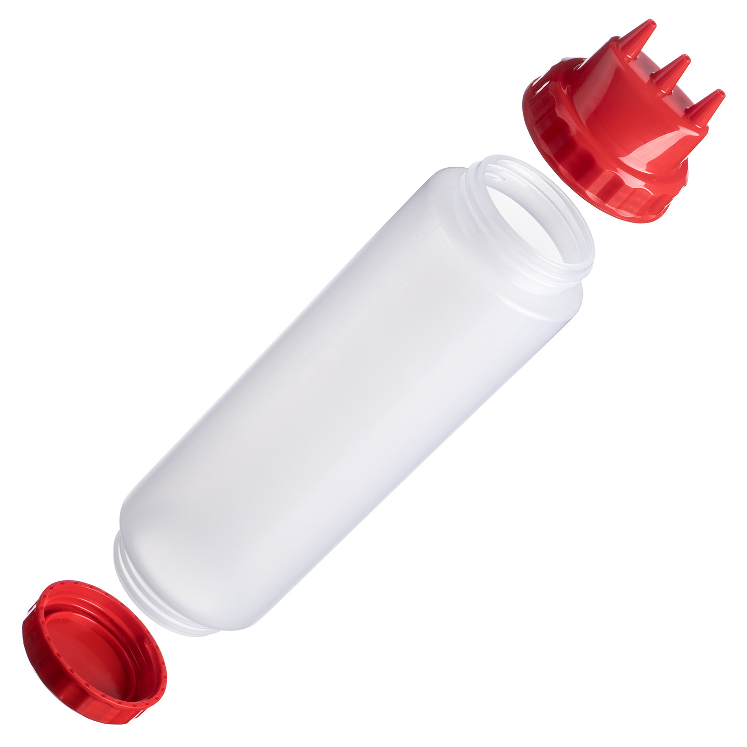 Емкость для соуса 1000 мл. d=75 мм. h=290 мм. c 2 крышками 3 носика, широкая прозрачная, крышки красные GP /1/96/
