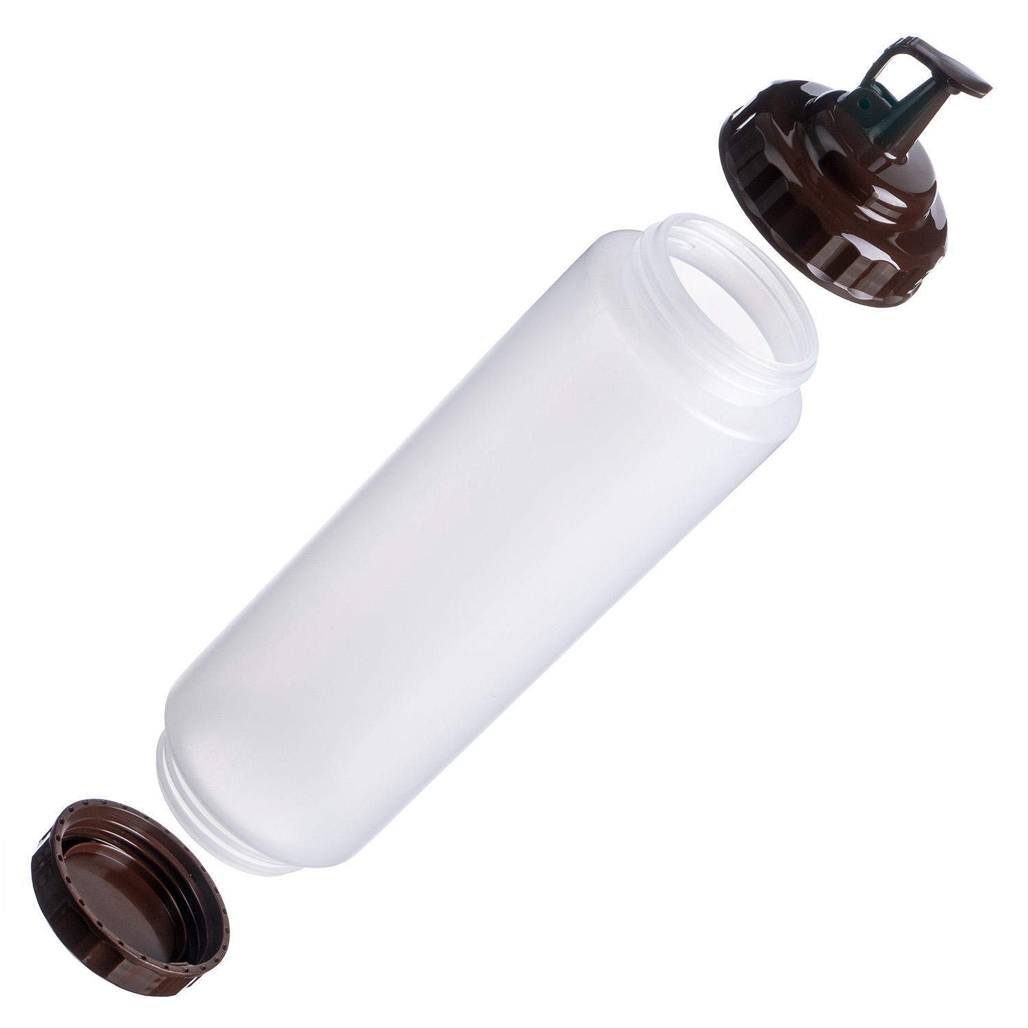 Емкость для соуса 1000 мл. d=75 мм. h=295 мм. c 2 крышками, широкая прозрачная, крышки коричневые GP /1/96/