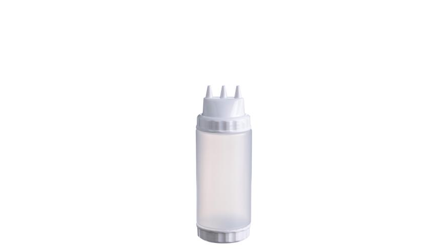 Емкость для соуса 500 мл выполнена из прочного пищевого пластика и предназначена для профессионального использования в сегменте HoReCa. Конструкция с двумя откручивающимися крышками обеспечивает удобство наполнения, использования и ухода. Тройной дозирующий носик позволяет быстро и точно распределять содержимое. Белый цвет служит маркировкой для майонеза и других белых соусов. Прозрачный корпус облегчает визуальный контроль содержимого. Подходит для мытья в посудомоечной машине.