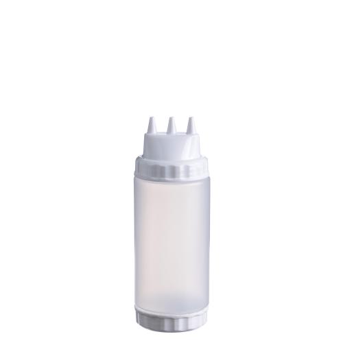 Емкость для соуса 500 мл. d=70 мм. h=200 мм. с 2 крышками 3 носика, широкая прозрачная, крышки белые GP /1/96/