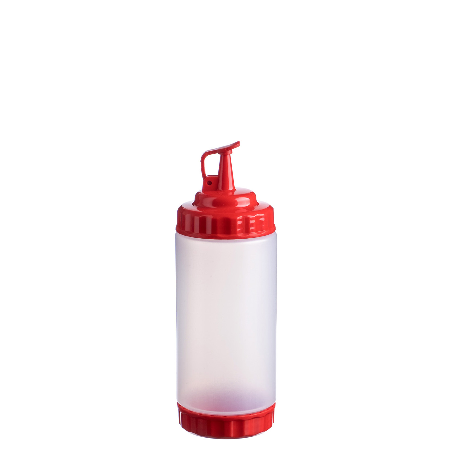 Емкость для соуса 500 мл выполнена из прочного пищевого пластика и предназначена для профессионального использования в сегменте HoReCa. Конструкция с двумя откручивающимися крышками обеспечивает удобство наполнения, использования и ухода. Дозирующий носик с крышкой-клапаном предотвращает проливы и защищает содержимое от загрязнений. Красный цвет служит маркировкой для кетчупа и острого соуса чили. Прозрачный корпус облегчает визуальный контроль содержимого. Подходит для мытья в посудомоечной машине.