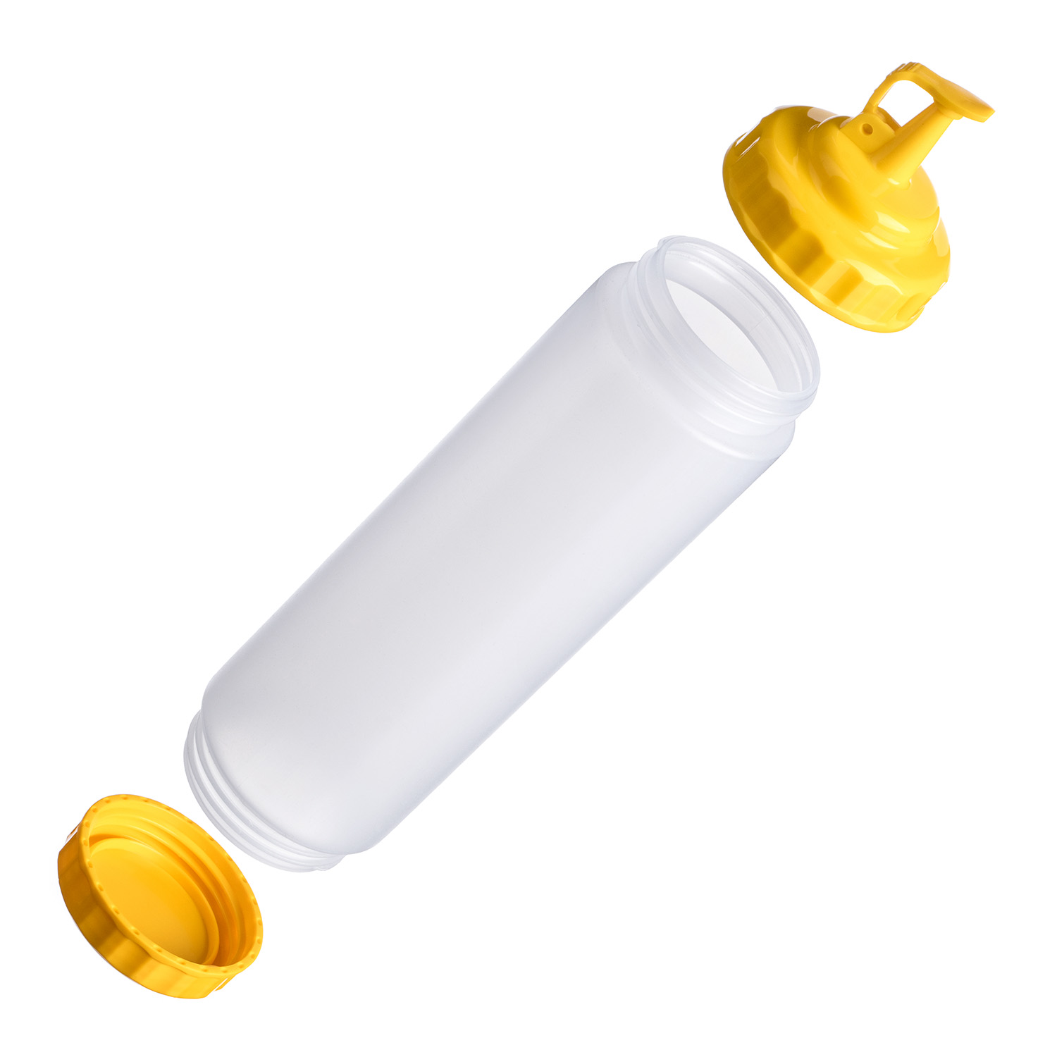 Емкость для соуса 750 мл. d=70 мм. h=270 мм. с 2 крышками, широкая прозрачная, крышки желтые GP /1/96/