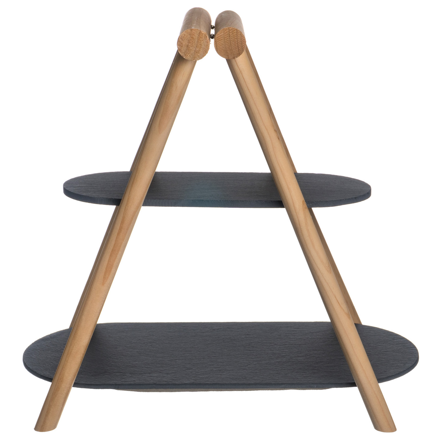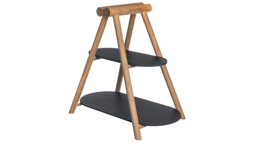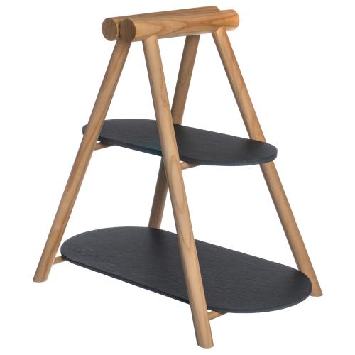 Этажерка 2-х ярусная 31*13,5/41*18,5 см. h=37 см. овальная с дерев. ножкой черная, сланец MGprof /1/5/ АКЦИЯ